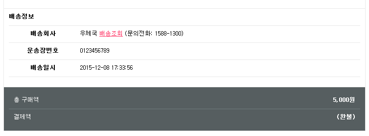 배송을 보내고 난 후 회원의 주문상세내역에는 아래와 같이 표시됩니다.