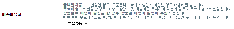 예시로 '배송비 유형'을 금액별차등으로 설정하고