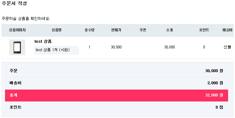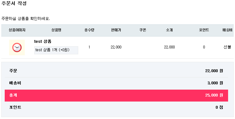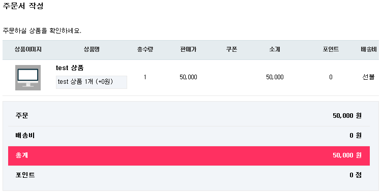 기본 설정의 '배송비 상한가'와 '배송비'를 통하여 상품을 구매하여 보겠습니다.