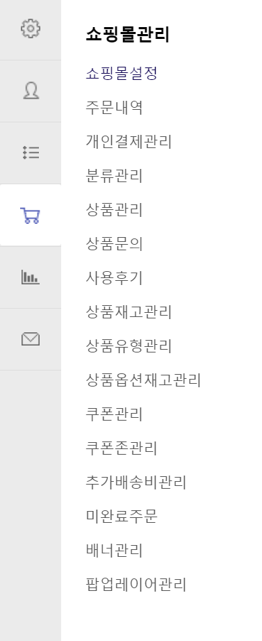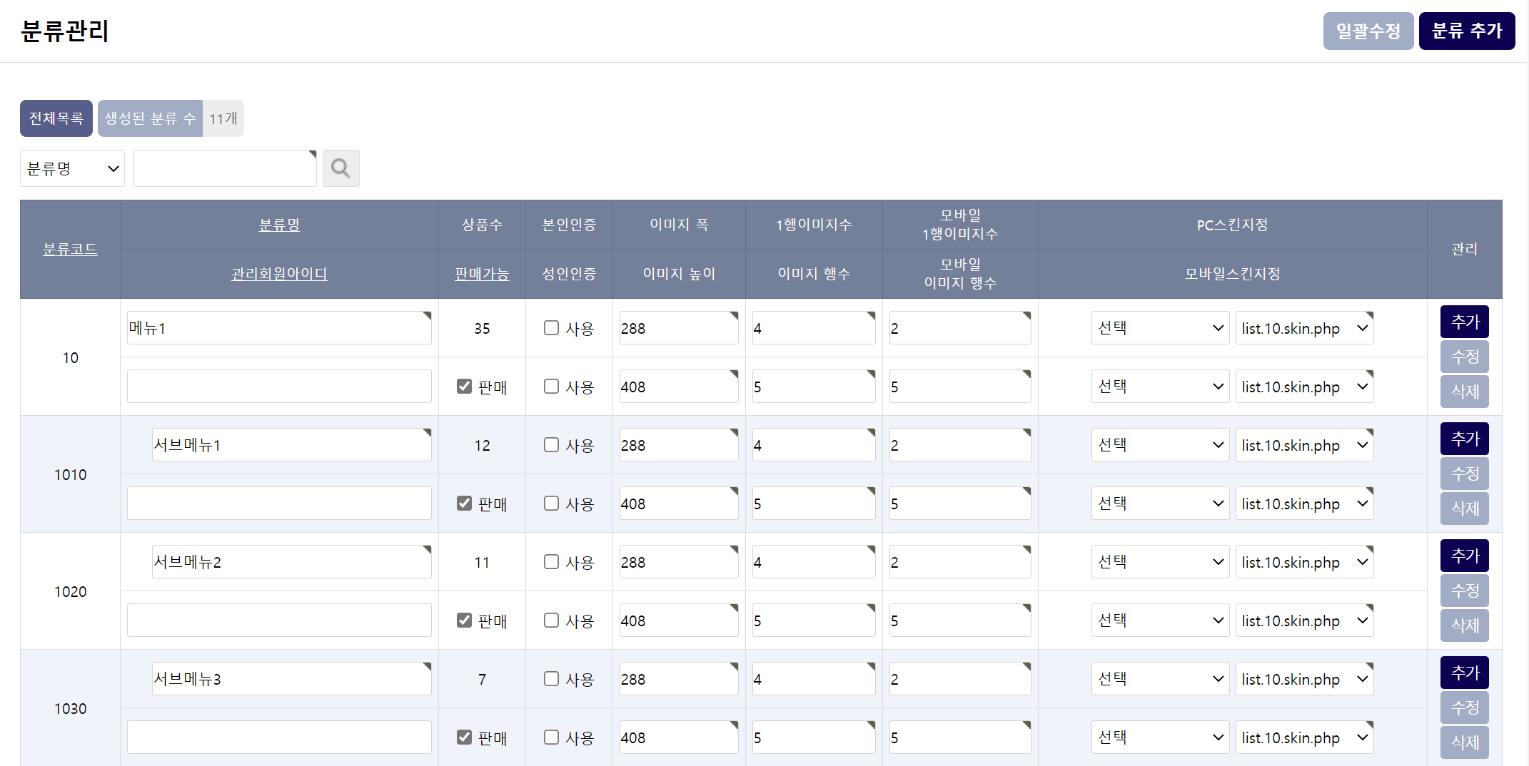분류관리를 통해 메뉴(카테고리)를 추가 및 삭제를 하실수 있습니다.