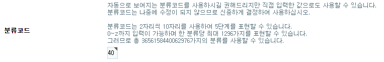 자동으로 보여지는 분류코드를 사용하길 권고하지만 직접 입력한 값으로도 사용할 수 있습니다.