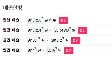매출 현황은 일일, 일간, 월간, 연간을 통하여 매출 현황을 조회할 수 있습니다.