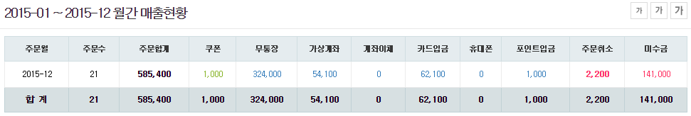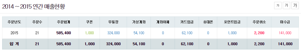 매출현황을 보기에 앞서 공통적으로 보여지는 표입니다.