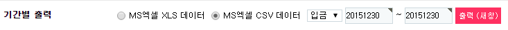 라디오 버튼에서 XLS나 CSV 데이터를 선택하지 않으면 새창으로 내역을 조회할 수 있습니다.