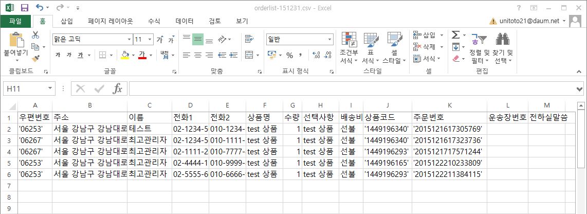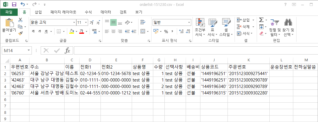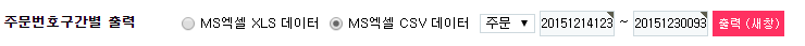 ■ 주문번호구간별 출력 - MS 엑셀 CSV 데이터