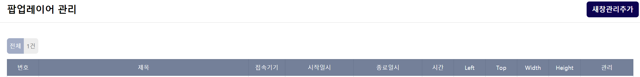 우측 상단에 '새창 관리 추가' 버튼을 클릭합니다.