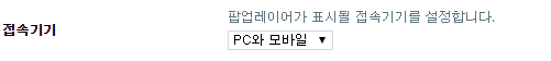기본 설정값은 'PC와 모바일'이며 두 페이지 모두 공통적인 팝업이 표시됩니다.