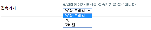 팝업 레이어가 표시될 접속 기기를 선택합니다.
