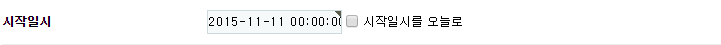 팝업의 시작 일시를 설정합니다. '시작 일시를 오늘로'를 체크하여 오늘로부터 팝업레이어를 띄울 수 있으며 사용자가 직접 시작 일시를 입력하여 설정할 수 있습니다.